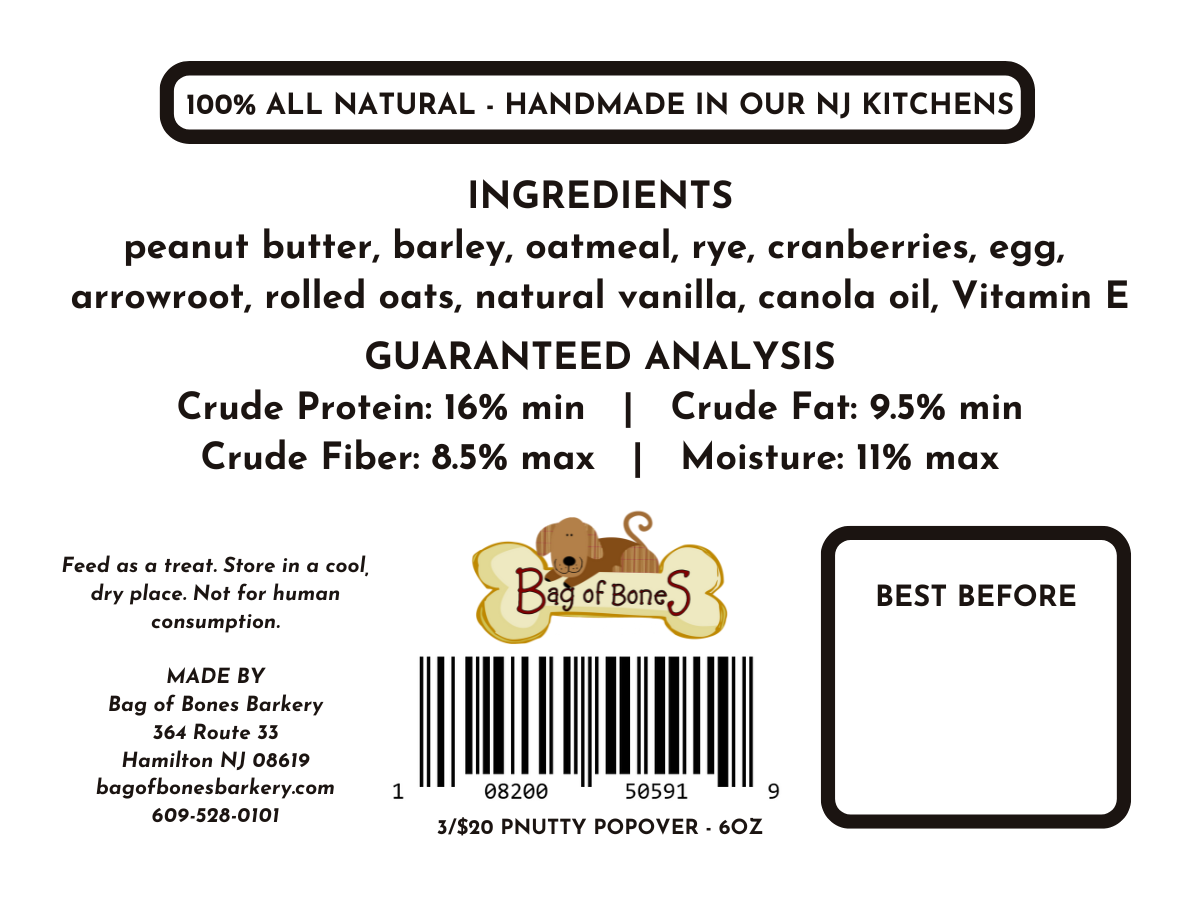3/$20 Dog Treats Spring 2026 - P-Nutty Popover
